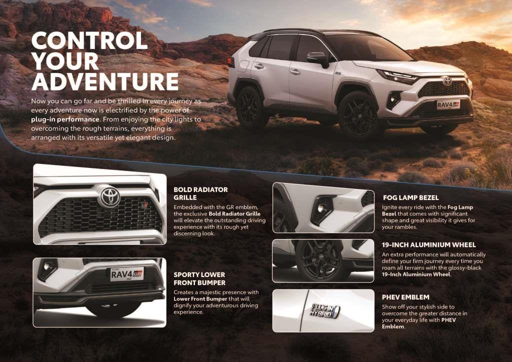 RAV4 GR Sport PHEV dilengkapi dengan teknologi yang canggih berpadu dengan gaya yang sporty, luxury dan elegan, hadirkan Sistem Hybrid yang fleksibel dengan kombinasi mesin dan motor listrik sehingga memberikan kemudahan dan kenyamanan yang membawa Anda berpetualang ‘pergi kemana saja’.